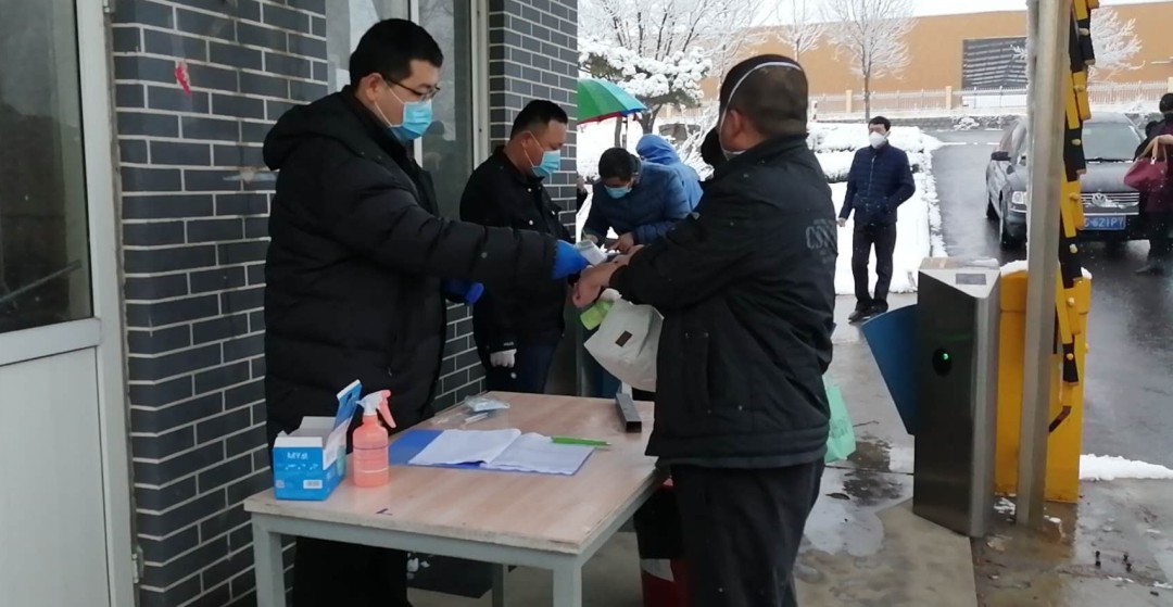 ——嚴(yán)格管控,嚴(yán)把車輛、人員出入關(guān)。廠區(qū)門衛(wèi)設(shè)置檢查站,門衛(wèi)實(shí)行24小時(shí)領(lǐng)導(dǎo)值班制,因消毒工作量加大,臨時(shí)調(diào)配辦公室人員1名,全面負(fù)責(zé)對(duì)進(jìn)入工廠人員、車輛進(jìn)行全面消毒、體溫測(cè)量并保持記錄,目前全員體溫均低于37.3度。廠區(qū)設(shè)立口罩專用帶蓋垃圾桶,張貼“廢棄口罩專用”文字標(biāo)識(shí),每4小時(shí)清理一次,確保對(duì)廢棄口罩的安全處理。同時(shí),嚴(yán)格規(guī)定全員不得早退、遲到,上班期間不允許員工離崗,全員工下班后需及時(shí)上報(bào)行動(dòng)軌跡。