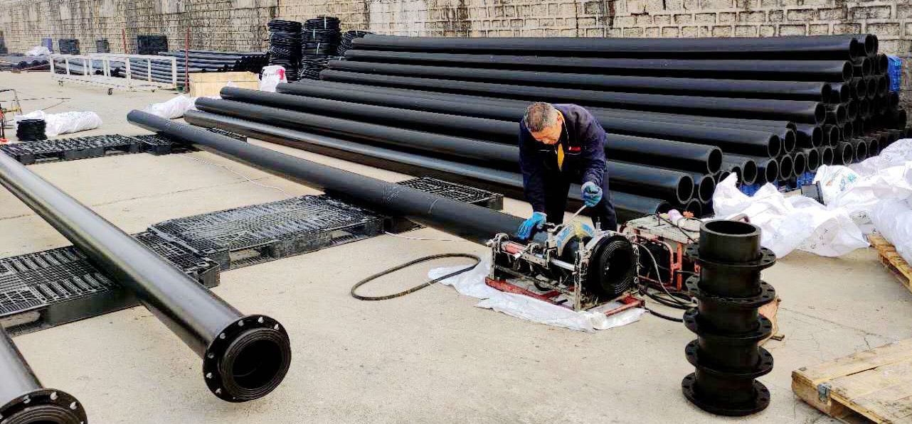 國慶中秋雙節(jié)前夕,金潮新材公司接到招遠市內(nèi)客戶急需規(guī)格為250×18.4 PE給水管660米和225×20.5 PE尾礦管1800米的兩筆訂單,發(fā)貨前需將管道兩端焊接好法蘭連接件。為確保訂單如期供貨,金潮新材公司生產(chǎn)部組織精干力量,放棄假日休息,起早貪黑、加班加點熱熔對接管材。單根225的大口徑管材重達130公斤,需要2人合力搬上對接設(shè)備。他們克服對接難度大、要求工藝高、時間緊、任務(wù)重等困難,憑著金潮人敬業(yè)的精神、過硬的技術(shù)、吃苦耐勞的作風(fēng),保質(zhì)保量地按時完成了供貨任務(wù)。