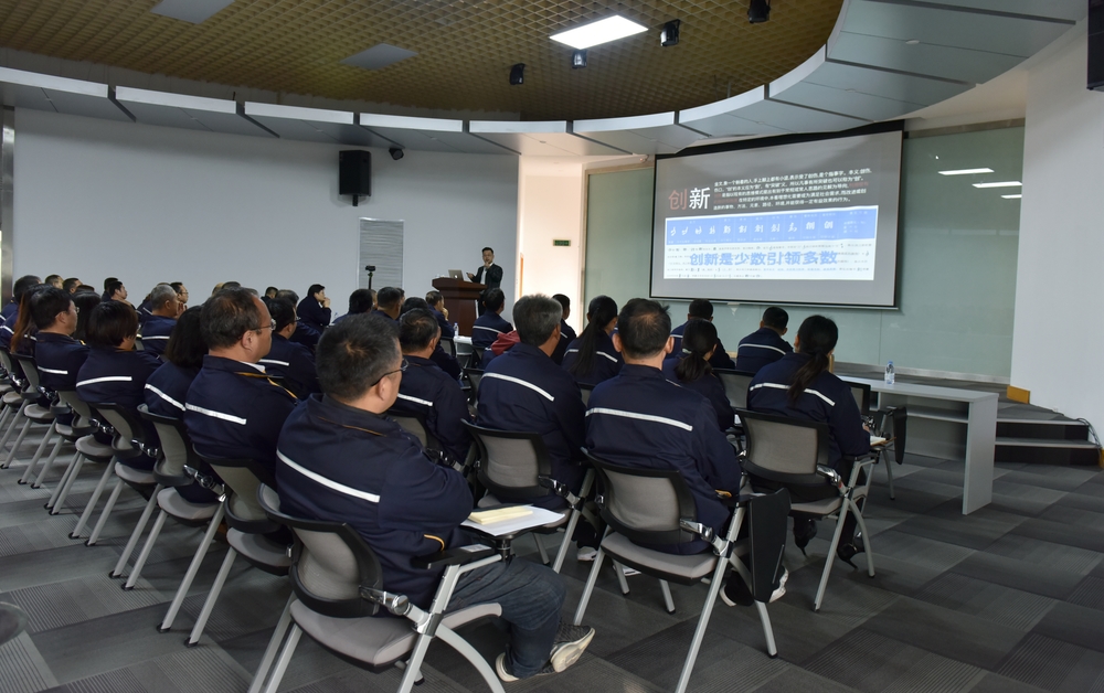 11月3日上午,金潮公司特邀濟南大學教授楊海波現(xiàn)場授課,在報告廳二樓會議室舉行《創(chuàng)新驅動發(fā)展 設計引領未來》專題講座。公司主管級以上干部150多人在此聆聽楊海波老師的精彩演講。這是“濟南大學——山東金潮新舊動能轉換技術研究院”創(chuàng)立4個月以來,雙方共同舉辦的首場講座。